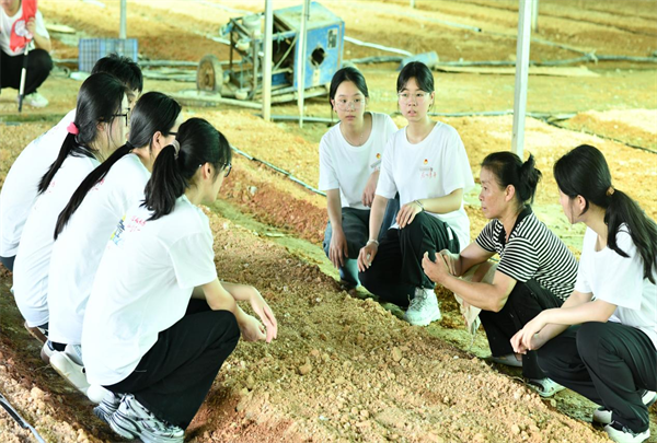图为实践队成员在桐林村农业种植合作社参观调研。欧阳连花摄