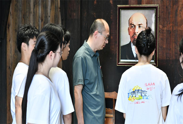 教育学院党委书记魏郁与实践队一行在桐林乡党委委员李鹏飞的带领下,走进朱德、曾山同志在桐林乡流源村的故居,斑驳的砖墙、简朴的陈设,仿佛诉说着当年的艰苦奋斗。通过观看珍贵的历史照片和文物资料,聆听革命故事,队员们仿佛穿越时空,深刻感受到革命先辈坚定的理想信念和崇高的革命精神,从中汲取到了奋进的力量。活动结束后,魏郁表示:“此次红色之旅不仅是一次历史追溯,更是一场精神洗礼,进一步坚定了应师院学子传承红色基因、投身乡村振兴的使命感”。