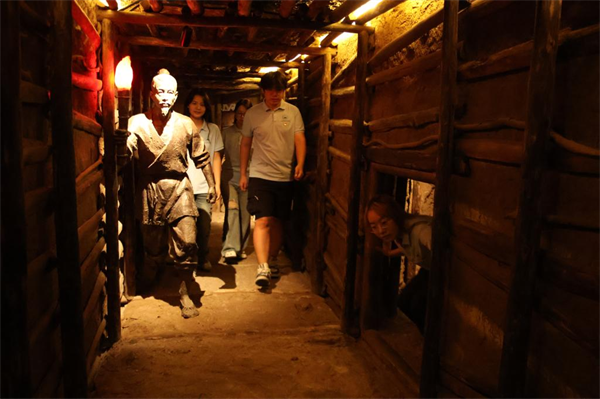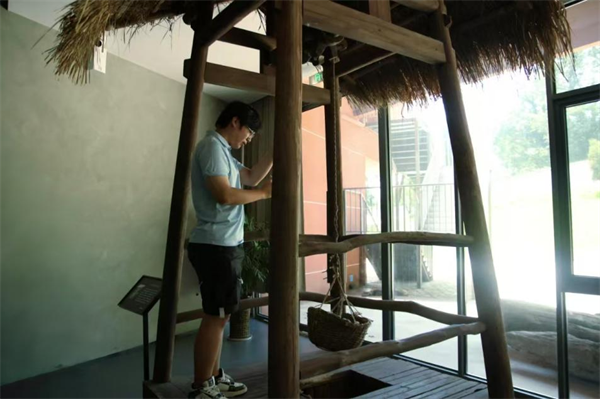 踏入瑞昌铜岭铜矿考古遗址公园,实践队员们仿佛穿越时空隧道,置身于殷商先民的智慧世界。在专业讲解员的引领下,昏暗的仿真巷道重现“竖井下掘”、“木架支护”的古老技艺——斑驳的巷道壁上,清晰可见石锤凿刻的痕迹;陶制排水管道蜿蜒盘曲,诉说着先民应对地下开采难题的巧思;原始炼炉遗迹虽已沉寂千年,却依然能让人感受到当年火光冲天、铜液奔涌的壮观场景。