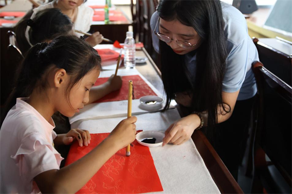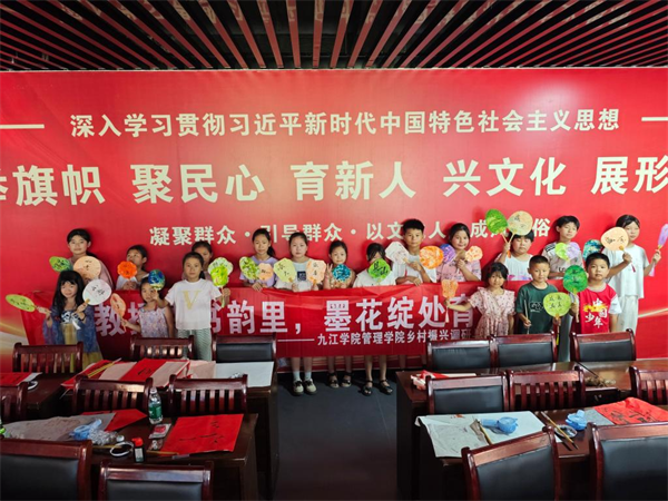 实践队员们不仅是矿冶文化的探寻者,更是新时代文明的传播者与乡村振兴的践行者。他们走进当地实践点,化身传统文化导师,从书法基础笔画教学到特色“福”字书写,从漆扇绘制到历史故事分享,让孩子们在趣味互动中感受中华优秀传统文化的魅力,实践队还向实践点赠送了书法作品;他们走上街头巷尾,变身反诈宣传员,通过典型案例剖析、反诈知识宣讲和资料发放,切实提升群众防范电信诈骗的意识和能力。