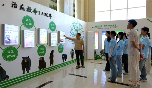 在康熊集团实业有限公司,科技与生态的协同共生令人瞩目。企业首创“无管引流”技术采集熊胆粉,实现动物保护与产业效益双赢,并通过“企业+农户”机制辐射带动周边就业。实践团成员张丹深有感触:“科技创新不仅让产业附加值倍增,更传递出对生态的敬畏与可持续发展的担当。”