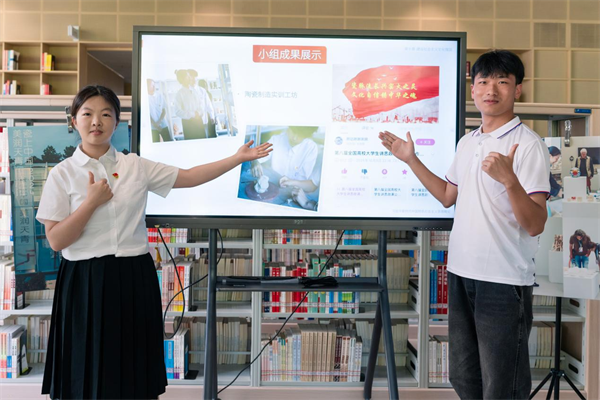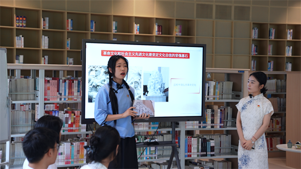 为落实江西“大思政课”综合改革试验区建设要求,7月11日,景德镇艺术职业大学马克思主义学院在图书馆大厅红色书籍阅读区开展了一场别开生面的“师生同台”思政示范课。课程由王海红老师主讲,以“坚定中国特色社会主义文化自信”为主题,将景德镇陶瓷文化与文化自信深度融合,为学生带来一堂有高度有深度有温度的沉浸式思政“金课”。