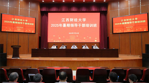 近日,江西财经大学2025年暑期领导干部培训班举行。校长邓辉,副校长阙善栋、袁红林、李春根、谢花林出席开班仪式,邓辉作讲话,阙善栋主持开班仪式。党政管理、教辅、科研、附属机构主要负责人以及挂靠单位负责人,教学机构党政负责人以及挂靠单位负责人,本科生培养单位党委副书记、分管人才培养的副院长,学院各专业负责人,近两届省教学成果奖获奖团队负责人、省教学成果奖青年培育项目团队负责人,国家级一流本科课程负责人,获“国创赛”“挑战杯”国奖的指导教师及教务处副科级及以上干部参加开班仪式。