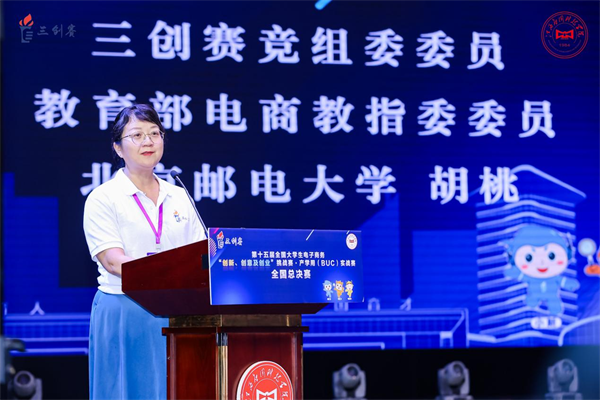 在闭幕式上,北京邮电大学胡桃教授作为竞组委与教指委代表对赛事进行了总结与点评。她指出,本届大赛以深化产教融合为核心,BUC模式有效搭建了高校、企业与市场之间的实践桥梁,实现了教育链、人才链与产业链、创新链的有机衔接。她总结了本届赛事的三大亮点:一是团队协作紧密,项目成果转化效果突出;二是技术应用与模式创新深度融合;三是参赛项目兼具社会价值与商业潜力。她同时建议,今后应进一步加强校企协同,注重以技术创新推动项目落地与可持续发展。