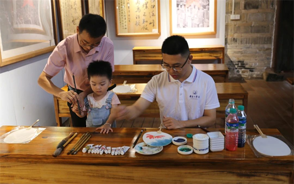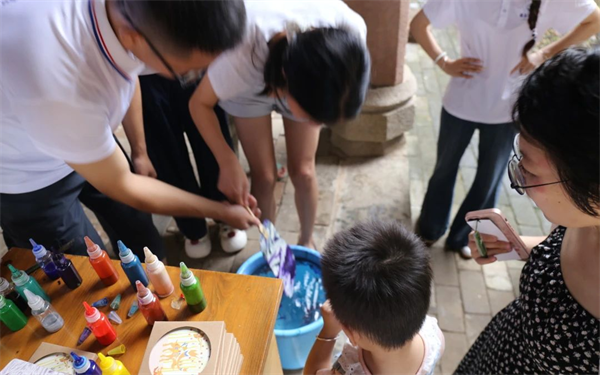 活动首重就是安全,通过防溺水安全歌和防溺水常识分享等为孩子们筑牢生命安全防线。随后非遗艺术课堂接踵而至,漆扇制作让孩子们体验漂漆技法,感受漆艺魅力;掐丝珐琅课程,孩子们亲手操作,将彩砂幻化为童趣画作,传承古老技艺;国画体验课上,从握笔开始,让孩子们用稚嫩笔触在扇面绘出对美的理解,也在他们心中种下艺术的种子。
