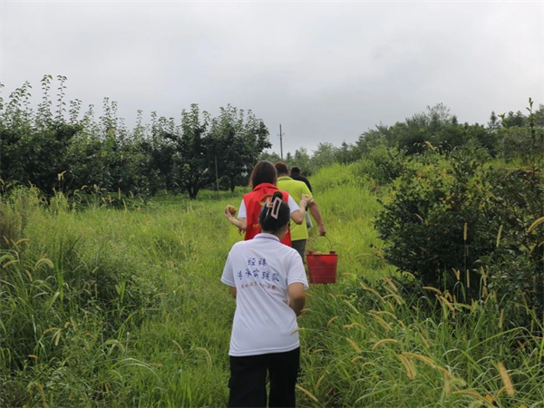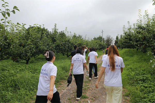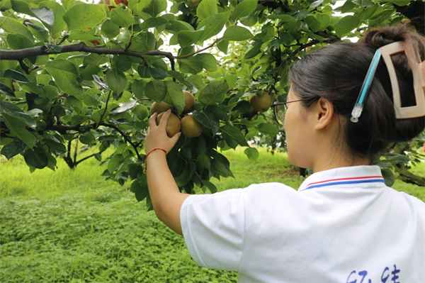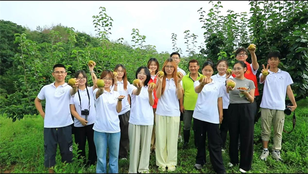 实践队成员采摘翠冠梨后与果农合影 摄影 简宏