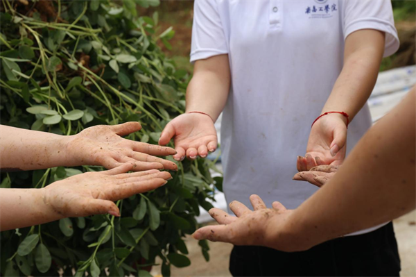 实践队成员展示拔完花生后的“脏脏手” 摄影 简宏