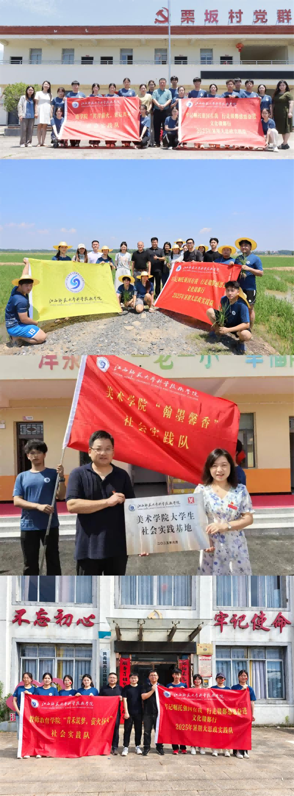 江西师范大学科学技术学院党政班子其他成员也分别深入各社会实践队,看望慰问师生,讲授思政微课,勉励青年学子在实践活动中接受教育、增长才干、作出贡献,不断强化自身素质、展现时代风采,努力成为新时代优秀青年。