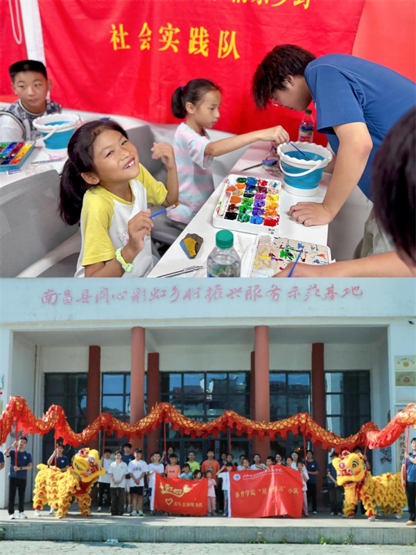 “翰墨馨香”实践队在共青城市泽泉乡朝阳社区,将非遗靛蓝技艺带入乡村课堂,以沉浸式美育点亮孩子艺术梦想;在“一老一小”幸福院开展水粉画实践课,以及融合革命历史、环保理念与艺术创造的“环保”创意美术课,让非遗文化在童心中扎根。