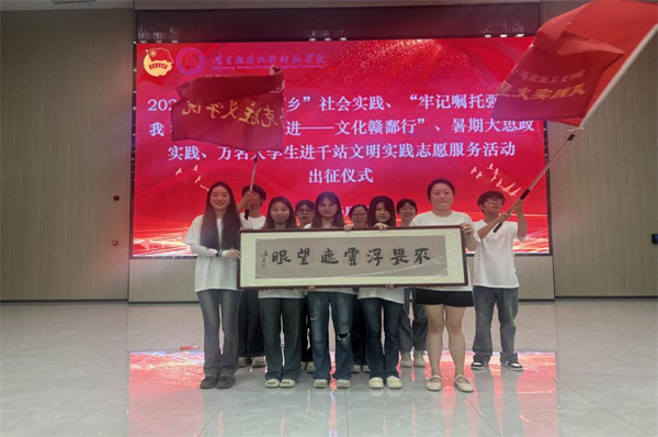 为深入学习贯彻习近平新时代中国特色社会主义思想,引导和帮助广大青年学生在实践中受教育、长才干、作贡献,进一步激发青年学子的社会责任感和使命感,2025年6月23日,南昌应用技术师范学院马克思主义学院星火社会实践队前往图书馆报告厅参加了2025年暑期“三下乡”社会实践、“牢记嘱托强国有我 行走赣鄱感恩奋进——文化赣鄱行”、暑期大思政实践、万名大学生进千站文明实践志愿服务活动出征仪式。