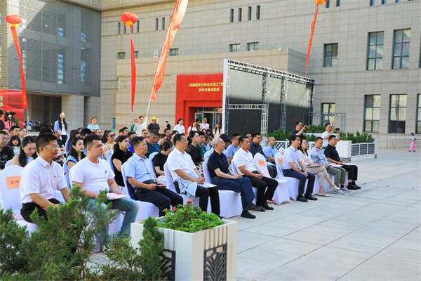 8月6日,在祖国西部边陲的璀璨明珠——新疆克孜勒苏柯尔克孜自治州,一场跨越千山万水的工艺美术盛宴在克州美术馆启幕。国家艺术基金资助项目《经典传承——历届中国工艺美术大师作品回巡展》走进新疆,以工艺为纽带,架起民族团结的桥梁,为文化润疆注入新的活力。本次展览由中国工艺美术学会、江西省对口支援新疆工作前方指挥部指导;南昌工学院、克州党委宣传部、克州文化体育广播电视和旅游局(文物局)联合主办;中国工艺美术大师博物馆、克州博物馆、美术馆承办;江西省工艺美术学会、南昌应用技术师范学院提供学术支持。克州党委常委、宣传部部长艾祖鹏,江西省对口支援新疆工作前方指挥部党委委员、副总指挥、克州人民政府党组成员朱建军,南昌工学院党委副书记、南昌应用技术师范学院校长陶也青,南昌工学院副校长陈博旺,南昌工学院校长助理李红浪,克州党委宣传部副部长周世纪,克州人大常委会教工委主任姚金龙,克州政协文化文史和学习委员会主任徐靖等州职部门负责人,以及新闻媒体百余人出席开幕仪式。克州文化体育广播电视和旅游局(文物局)党组书记、副局长马中阳主持开幕式。