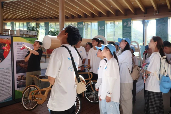在竹科技博物馆,从实用物件到创意艺术,竹子的多元应用,让实践队成员惊叹于翠竹蜕变为艺术品的构造之美,深刻领略到竹科技的创新魅力与广阔前景,领悟到“绿色是高质量发展的鲜明底色”这一发展理念。