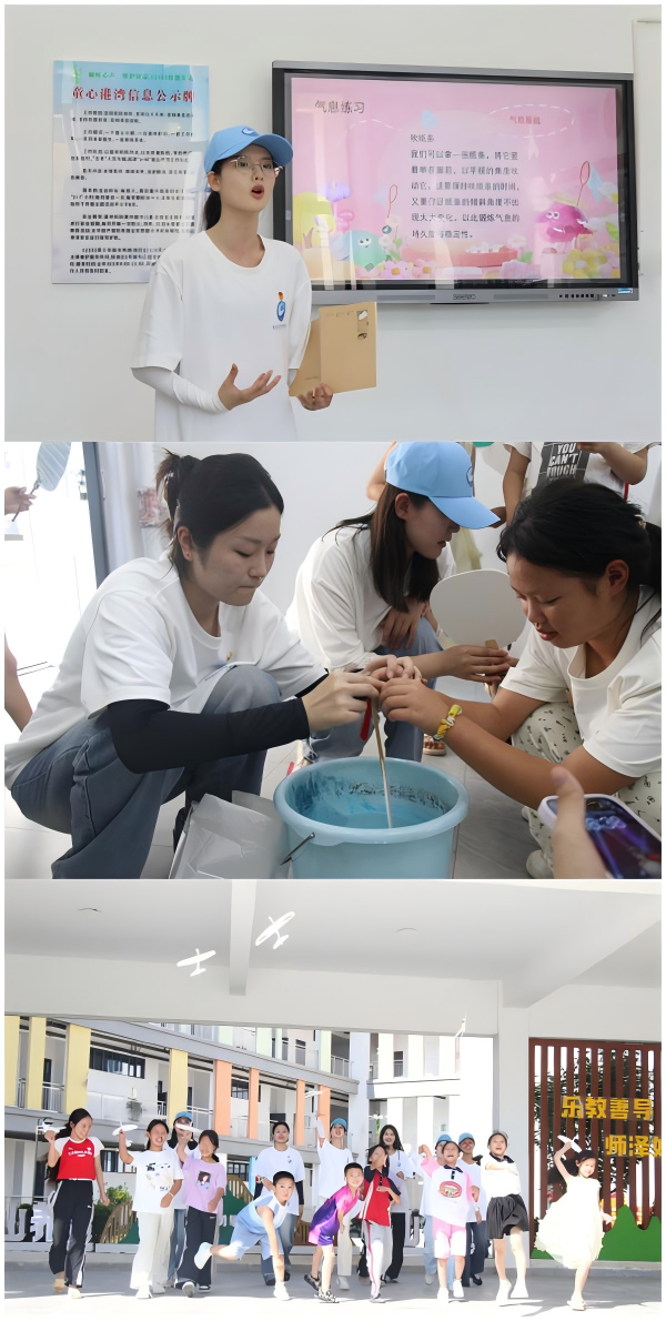 青春筑梦童心港,爱心护航成长路。实践队走进童心港湾,依托专业优势有机融合理论宣讲、互动训练和实践体验,系统开展了涵盖语言能力提升、安全素养培育、科学思维启蒙、文化传承创新四大模块开展主题教育活动。通过专业化课程设计、沉浸式互动体验等相结合的方式,为当地儿童带来了一堂别开生面的课堂,为当地留守儿童的健康成长保驾护航。