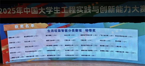 本届大赛以“交叉融合工程创新育新质,立德树人强国建设勇担当”为主题,采用校赛、省赛、国赛三级选拔机制,涵盖“新能源车”、“智能+”、“虚拟仿真”三个赛道共九个赛项,涉及基础工程设计、人工智能赋能的机电综合系统设计、重大装备设计、工程管理与决策、数字化新媒体等多个领域。比赛强调现场实践与工程特色,所有参赛队伍需进行现场调试、运行与实物展示,真正考验选手的综合创新与动手能力。自2024年10月起,机械电子工程学院在学校领导的关怀和创新创业学院的大力支持下,积极宣传、动员并组织学生备赛。经过近一年的刻苦训练和多轮比拼,学院两支参赛团队在省赛中脱颖而出,成功晋级全国总决赛并取得优异成绩。垃圾智能分类团队(熊铠、梅军伟、赖泽祥、钟金宝)以全省第一的成绩晋级全国总决赛,最终斩获全国特等奖。智能物流搬运团队(曹宇扬、骆耀劲、熊盼盼、李也平)以全省第五的成绩晋级全国总决赛,最终荣获全国二等奖。