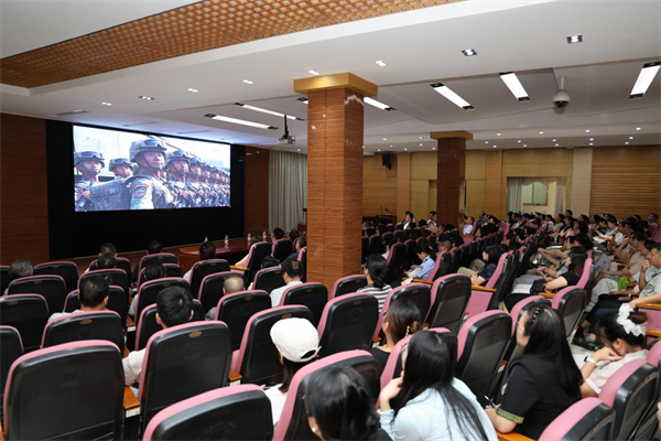 在党旗、国旗、军旗引领下,受阅方阵踏着铿锵步伐经过天安门,45个方(梯)队依次亮相,陆海空基战略重器、高超精打、无人和反无人装备彰显着现代化军队的威武气势。三军列阵、铁甲生辉的庄严场景,不仅展现了新时代中国国防和军队建设的辉煌成就,更是一堂生动而深刻的“大思政课”。师生们纷纷表示,要将习近平总书记重要讲话精神转化为立德树人的实际行动,坚守为党育人、为国育才的初心使命,铭记历史、珍爱和平,将爱国情、强国志转化为报国行。
