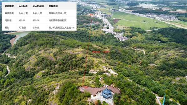 灵谷峰景区距市区约12公里,主峰海拔320.6米,占地面积约6平方公里,为国家AAAA级旅游景区。该区域地形复杂,传统物流配送面临“最后一公里”的难题,人工物流配送从景区山脚到山顶平均耗时超40分钟,游客急需的药品、食品等物资运输不便,成为景区服务的痛点。相比之下,本次试飞中,物流无人机从山脚配送点起飞,沿着预定航线快速抵达灵谷峰景区山顶,全程仅用时2分钟,效率提升数十倍。物流无人机配备高精度定位技术和智能避障系统,调度灵活、快捷高效,且不受地形限制,可实现景区内药品、紧急物资、特色农产品等商品的安全、快速和精准配送,为游客提供更加便捷的服务体验。