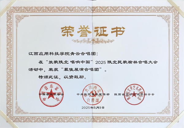 江西应用科技学院青云合唱团获2025年陕北民歌合唱大会“最佳展演合唱团”