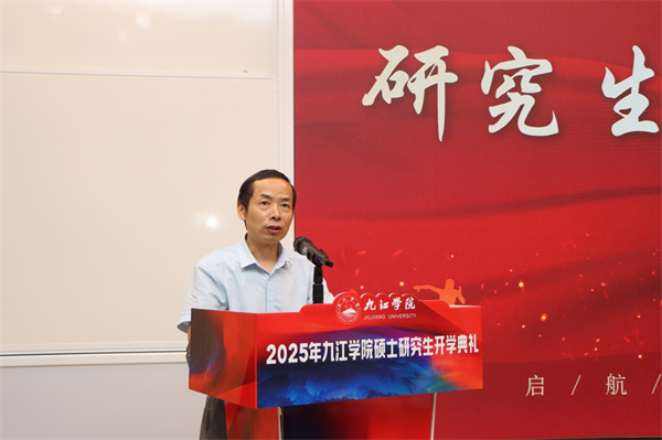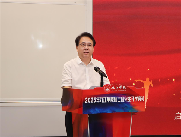 典礼上,李明斌首先向来自全国23个省份、50多所高校的研究生表示欢迎,强调多元化的生源背景将为校园注入新的活力。在回顾学校办学历史时,李明斌指出,九江学院溯源于1901年创立的但福德医院护士学校,2002年由四校合并升格为本科高校,2024年成功获批硕士学位授予单位,生物与医药、资源与环境、国际商务三个学位点成为首批硕士授权专业。目前,学校正紧紧围绕更名大学的目标强化学科建设,已有10个学位点达到申硕条件,研究生教育体系日益完善。他还特别介绍了学校在科研与社会服务方面取得的显著成绩,包括荣获3项国家级行业科技奖、2024年以来科研与社会服务到账经费突破1亿元,并拥有重组后的省级重点实验室和10个国家级科技小院等高层次平台,为研究生学术研究与实战能力提升提供了坚实支撑。
