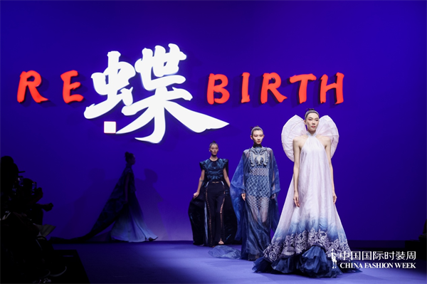 江西服装学院青年教师成昊以“蝶”为主题的大秀,发布了干士品牌的新作品。成昊用八年深居苗岭的苦行,将苗族蜡染的古老技艺推向国际时尚舞台,本场大秀以苗族创世古歌“蝴蝶妈妈”为灵感来源,持续以非遗蜡染技艺为核心,结合绳结、编织与3D打印等多元现代工艺,跃动鲜活的设计笔触再次强调“非遗不是标本,而是活的细胞”,以质朴隽永的非遗传承人之姿完成了当代时装叙事的文化破茧。肩负使命的非遗传承人成昊展示的不只是服装,他的每一次呈现,探讨的都是关乎非遗发展的重大议题,在文化价值与消费趋势之间找寻平衡的努力,为手艺人的生活改善而加强实用性的设计探索,也是作为江服教师为学与研打开的“蝶”变之门。