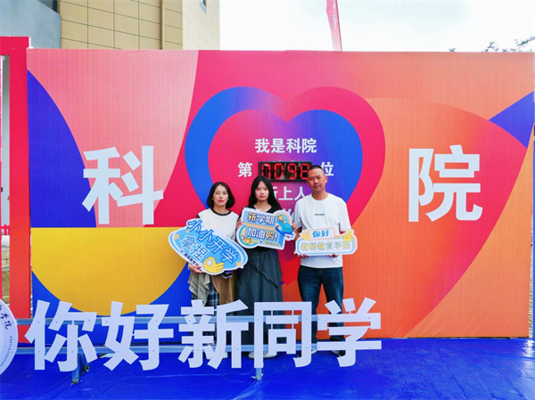 校园内外洋溢着迎新的喜悦与活力。校门口和林荫道上,一条条鲜艳的横幅迎风舒展,字字句句传递着师生对新生的诚挚欢迎与美好祝愿。新生姓名艺术墙、祝福签名板和各式创意互动打卡点吸引了众多目光,家长们纷纷举起相机,为孩子们记录下与科院相遇的第一张珍贵合影。