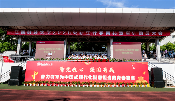 近日,江西财经大学2025级新生开学典礼暨军训动员大会在麦庐园南区田径场举行。学校领导刘耀彬、阙善栋、袁红林、李春根、贺丹君、谢花林、方玉明,承训单位领导出席典礼。校属各职能部门负责人、各学院院长、党委书记、2025级新生班主任以及2025级全体新生参加开学典礼。开学典礼由副校长阙善栋主持。