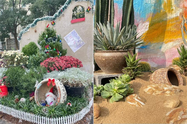 “不同于传统的设计作业,这次活动要求我们从‘纸上谈兵’转向‘实地建造’,不仅要考虑植物的生长习性、空间的功能布局,还要亲自动手处理材料、搭建结构,整个过程充满挑战但收获满满。”参与作品《陶语森境,疗愈绿洲》设计的A2362班学生刘萍瑶表示,通过此次实践,她深刻体会到“微空间”背后的大价值——看似小巧的花园,实则是城市生态系统的“微小细胞”,能够为改善人居环境、提升生活品质发挥重要作用。
