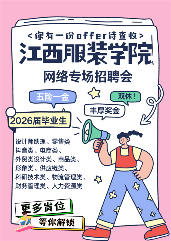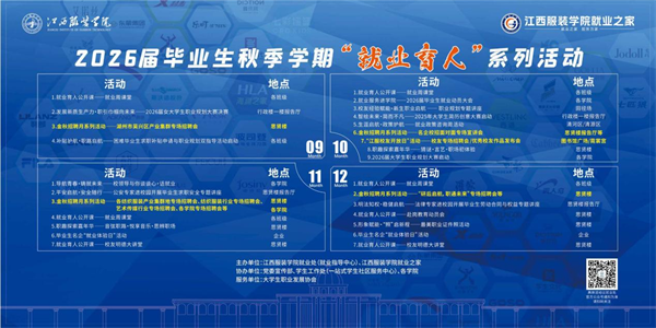 金秋时节结硕果,就业服务再启航。江西服装学院将以“迎战就业新形势,高位谋划精准施策”为工作主线,持续拓展就业渠道,优化就业服务,为2026届毕业生更加充分、更高质量就业保驾护航。