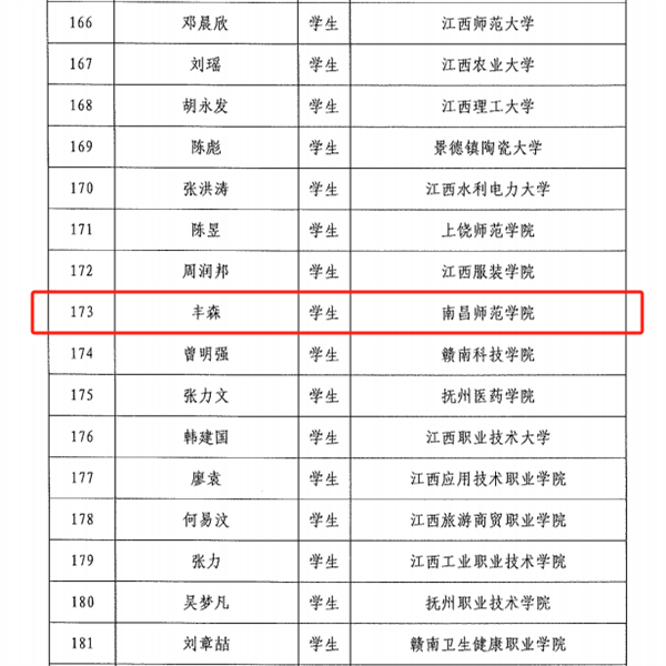 南昌师范学院毕业生丰森荣获2024-2025年度高校毕业生基层就业卓越奖学金