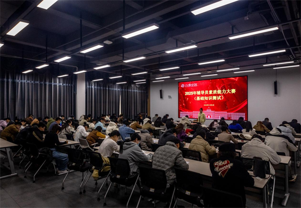 12月3日上午在图书馆学术报告厅举行的辅导员素质能力大赛(基础知识测试),采用闭卷作答方式进行,限时90分钟,重点考查辅导员的理论素养和业务知识。测试内容主要包括党的创新理论、路线方针政策;党史、新中国史、改革开放史、社会主义发展史、中华民族发展史;党和国家关于高校党建和思想政治工作的重要会议及文件精神;辅导员在大学生思想政治教育等方面的业务素质和专业知识等。