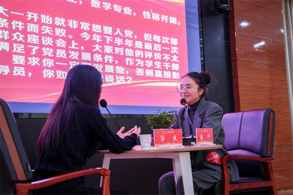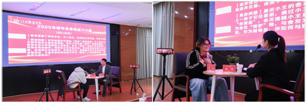 12月4日下午,培训班举行了辅导员素质能力大赛谈心谈话环节,主要考察辅导员对学生特征、学生成长成才规律的了解把握程度,对学生的教育引导能力、解决理论困惑和实际问题的能力等。“谈心谈话”环节采用情景模拟方式,由学生扮演遇到学业困难、人际冲突、情感困扰、择业迷茫等各类问题的学生,参赛辅导员需现场介入并进行沟通疏导。面对复杂多样的模拟情景,辅导员们沉着应对,灵活运用心理学、教育学知识及日常工作经验,展现出良好的共情能力、倾听技巧、分析研判与教育引导能力。谈话中既有原则性的坚持,也充满人文关怀的温暖,生动诠释了“围绕学生、关照学生、服务学生”的工作理念。