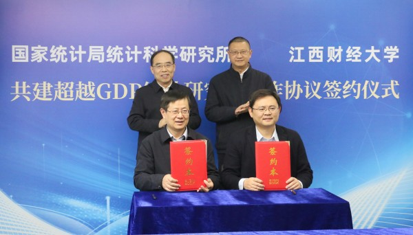 近日,国家统计局统计科学研究所与江西财经大学在北京签署合作协议,共同组建“超越GDP统计研究院”。签约仪式在江西财经大学北京高等研究院举行。国家统计局副局长蔺涛,校党委书记刘耀彬出席仪式并致辞。