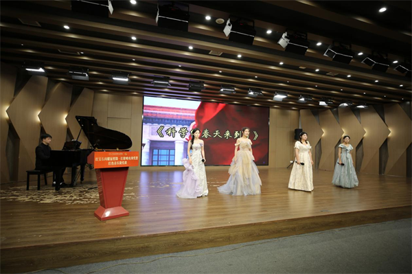 “排练这些作品时,我们会主动去查资料,了解歌曲创作的历史背景。”一位参与演出的学生说,“唱的时候,心里更清楚自己在唱什么。”在这一过程中,音乐成为学生走近党史的一种方式,也让党课从“被动接受”转向“主动参与”。