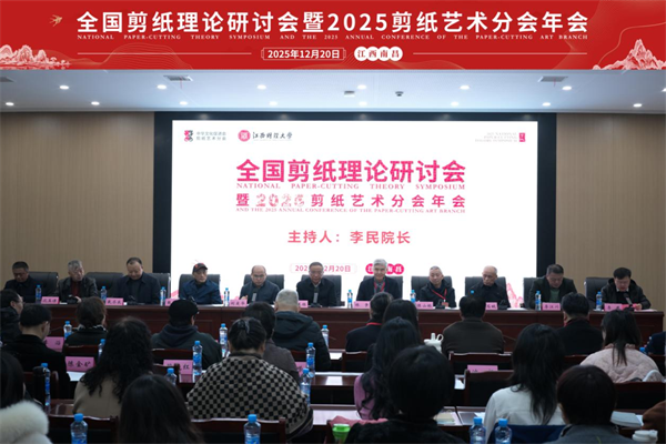 冬韵赣鄱,艺聚江财。近日,由中华文化促进会、江西省民间文艺家协会指导,中华文化促进会剪纸艺术分会与江西财经大学联合主办,江西财经大学设计与艺术学院、剪纸艺术协同创新中心承办的“全国剪纸理论研讨会暨2025剪纸艺术分会年会”在江西财经大学成功举办。来自全国30余个省市的剪纸非遗传承人、国家级大师、高校学者及行业专家等百余位嘉宾齐聚一堂,以剪为媒、以艺会友,共探剪纸艺术的传承之道与创新之路。