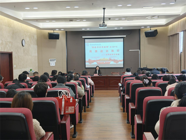 讲座尾声,胡晓娥引用习近平总书记在党的二十大报告中的殷切寄语勉励学子:“广大青年要坚定不移听党话、跟党走,怀抱梦想又脚踏实地,敢想敢为又善作善成,立志做有理想、敢担当、能吃苦、肯奋斗的新时代好青年,让青春在全面建设社会主义现代化国家的火热实践中绽放绚丽之花。”