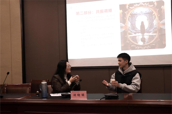 坐在台上,郑潇宇坦诚道:这场互动调频结束时,我的生命能量值已从最初的100跃升至250,完成了从“恐惧陌生”到“敢直面问题”的心态蜕变。而台上台下的师生们在这场真实的“生命调频”中同频共振,也跟着学会了如何在“卡点时刻”打破自己的舒适区,自我调频力悄然生长。
