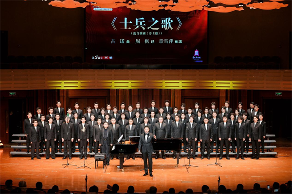 演出中,《美丽的夏牧场》《南泥湾》《呼伦贝尔大草原》等作品铺展出丰富的音乐画面,《渔阳鼙鼓动地来》《满城红》等作品在传统与现代表达中彰显家国情怀,《士兵之歌》《伏尔加船夫曲》等中外作品则展现出男声合唱厚重而富有张力的艺术表现力。音乐会在全体演员与观众齐声高唱《歌唱祖国》中落下帷幕。