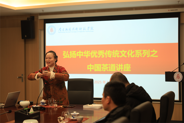 千年茶道,智慧如泉。12月4日,由南昌应用技术师范学院工会主办的“茶香四溢,清新流畅”弘扬中华优秀传统文化系列之中国茶道讲座在校举行。讲座特邀江西省茶叶协会会长黄光辉、江西省茶叶协会驻会副秘书长黄鑫磊、江西省茶叶协会茶学导师张倩等古今茶事服务团队,以其精湛的古法制茶技艺与典雅庄重的饮茶礼仪,让与会教职工在茶香中感悟传统文化魅力。
