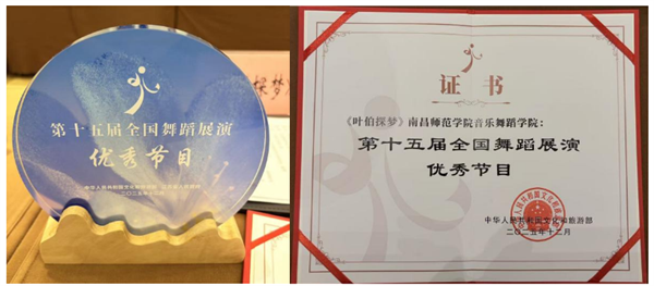12月10日,第十五届全国舞蹈展演在无锡举行。作为我国舞蹈艺术领域规格最高、影响最广的国家级盛会,该展演自1980年创办以来每三年举办一次,由文化和旅游部主办。本届活动经过层层筛选,从全国众多报送作品中优中选优,最终确定了10部精品舞剧、舞蹈诗及51个优秀舞蹈节目入围。由南昌师范学院音乐舞蹈学院王舒妮、刘永红、王孟编导,苏蔚琦担任音乐制作的作品《叶伯探梦》,作为江西省唯一作品成功入选全国51个优秀舞蹈节目之列,充分展示了我校舞蹈学专业在学科建设和艺术创作方面的高质量发展。展演期间,《叶伯探梦》与众多国内顶尖舞蹈作品同台竞技,凭借独具地域特色的舞蹈语汇和艺术表现形式获得观众一致好评,生动展现了学校师生从田野调研、课堂教学、理论研究,再到艺术创作的创造性转化和创新性发展的闭环链条。