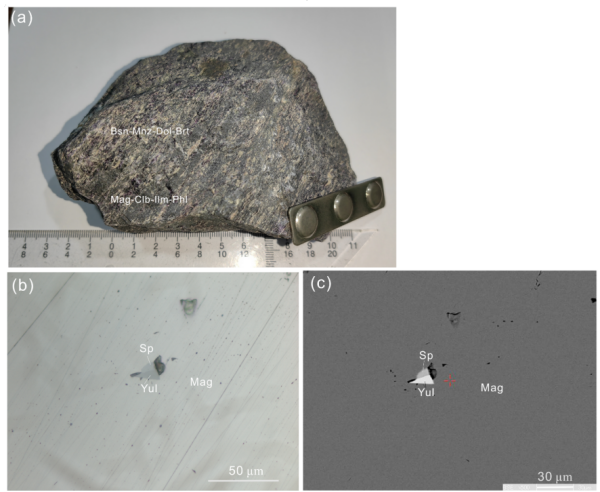 玉林锶铌矿产地白云鄂博是世界上最重要的稀土资源基地之一,同时也是我国重要战略金属锶与铌矿产的来源地。玉林锶铌矿的发现进一步丰富了该矿区铌一稀土矿物体系的多样性,对于推动关键金属资源基础研究具有重要意义。