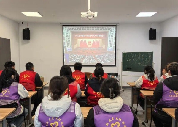 活动伊始,全体参与人员共同观看全国两会相关报道,聚焦政府工作报告中民生保障、基层治理、青年发展等核心内容,深入领会党中央对民生工作的部署要求,结合教育思想大讨论,凝聚“以学促行、以行践知”的思想共识,为后续志愿服务筑牢思想根基。