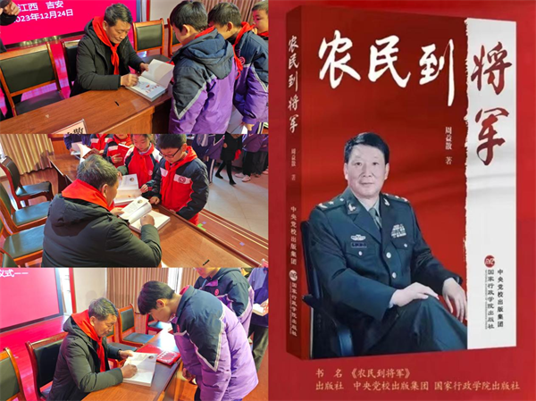 传承红色基因,争做时代新人。近日,《农民到将军》主人公,中共江西省委原常委、江西省军区原政委陶正明向吉安市吉州区瑞华学校捐赠了一批红色书籍。《农民到将军》作者周益散,捐赠联系人、吉安市城管局监察支队长张孟敢,吉州区委常委、宣传部部长张学伟,吉州区教体局局长孙军及捐赠联系人袁铮荣,学校领导、部分师生代表出席捐赠仪式。