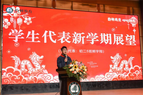初二5班熊宇翔同学分享了自己新学期的目标和展望。呼吁大家要坚定信念,勇于挑战,敢于追求,创造属于自己的精彩!