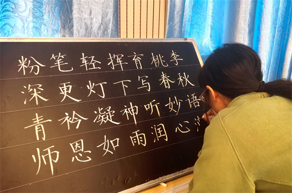 在静态类比赛现场,气氛宁静而专注。“三笔字/绘画”赛区,教师们凝神静气,挥毫泼墨。或工整清秀的楷书,或行云流水的行草,一方黑板、一张宣纸之上,展现的是教师们扎实的教学基本功和深厚的文化底蕴。绘画赛场同样佳作频出,水彩、粉笔画、国画、素描等作品主题鲜明,构图精巧,色彩和谐,充分体现了教师们对生活的热爱和对美的追求。