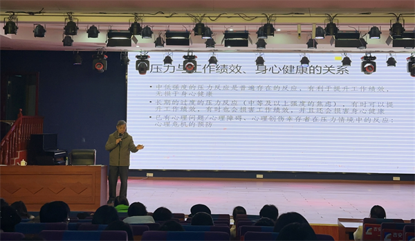 为提升教师情绪管理与压力应对能力,构建和谐育人环境,12月22日,吉安市石阳小学举办“教师压力调适与自我关怀——情绪管理与心理成长支持”专题讲座。活动特邀井冈山大学副教授、硕士生导师、中国心理学会注册心理师陈剑锋作主讲,为全体教师送上专业且温暖的心理健康指导。