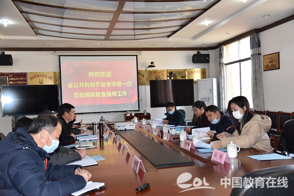 省科技厅机关后勤服务中心主任邱绍群在介绍考评组此次来意后,学院院长郭志江对考评组一行表示热烈欢迎,并对学院的基本情况以及与会人员做了简要介绍。随后,郭志江从降低能源资源消耗、加强节能组织管理、强化节能制度建设、规范能源计量统计、组织节能宣传培训、严格节能监督考核、加大节能资金投入等七个方面进行了汇报,并对2021年节能工作要点作了简要说明。