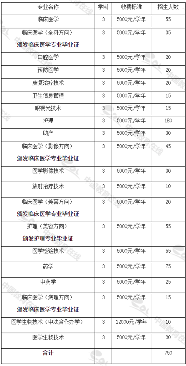 注:医学生物技术(中法合作办学)专业只招高中毕业生和具有医学相关专业毕业的中专毕业生。