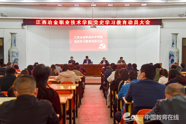 讯 3月17日下午,江西冶金职业技术学院在图书馆新时代文明实践中心召开党史学习教育动员大会,深入学习贯彻习近平总书记在党史学习教育动员大会上的重要讲话精神;贯彻落实中央、省委和省国资委党委、省委教育工委关于开展党史学习教育的决策部署要求;对学院开展党史学习教育进行动员部署。学院党委副书记、院长郭志江出席并作动员讲话,党委副书记李茂旺主持大会。党委委员、纪委书记谢向莹,党委委员、副院长谢翀出席。