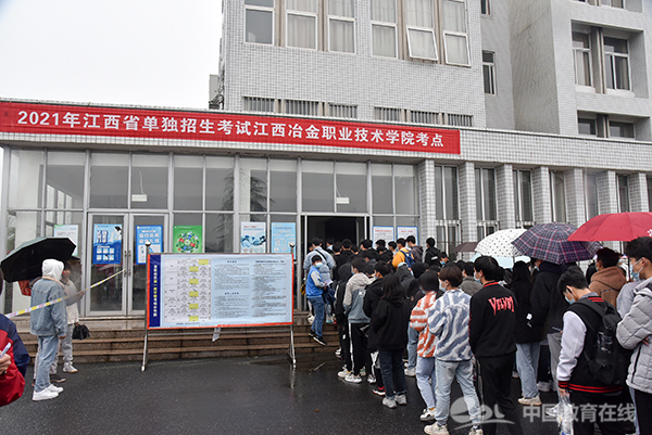讯 3月21日上午,江西冶金职业技术学院2021年单招考试顺利举行。省教育考试院办公室副主任赖婧一行到校巡察考试工作,新余市教育局招考办主任章荣洪,学院党委副书记、院长郭志江,党委副书记李茂旺,纪委书记谢向莹、副院长谢翀等人陪同到考点查看。巡考组对学校单独招生工作组织领导和考生参考情况表示充分肯定。