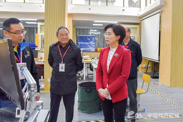 在智能制造工程中心,陈文华一行实地参观学生实训基地,对学院获得的奖项和工作表示认可。