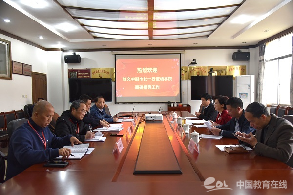 讯 4月2日上午,新余市副市长陈文华在市教育局局长张晓明等领导陪同下,莅临江西冶金职业技术学院调研指导工作。学院党委副书记、院长郭志江,党委副书记李茂旺,副院长彭全接待。